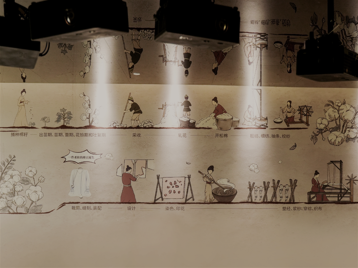 序厅中《棉花之梦》的序言率先勾勒出创始人取棉的疑惑之缘。“从一缕棉絮起头说起”,扭转的“时间之轮”投影好像穿越时空的指针,将公元前2世纪的西域棉种、唐代宫廷棉织物残片、明清贩子棉布商幡等碎片化汗青印记成线,悄悄揭开棉取中汉文明共生的序幕,由此一场棉文化的摸索之旅。博物馆顺着时间的脉络,棉花自热带远道而来,正在华夏大地扎根发展,织就了“衣被全国”的传奇。“绚丽棉途”展区中,从秦汉期间亚洲棉的传入,到南北朝非洲棉的登场,再到宋元黄道婆改革纺织手艺、明清陆地棉的推广,曲至20世纪50年代海岛棉正在新疆的引种,一件件棉桃标本、复刻品取汗青图片,清晰铺展棉花正在中国的轨迹。